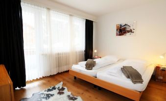 Apollo 3 is a newly renovated modern apartment that offers a centric place to rest and relax after a day of skiing or hiking, for up to 8 persons. It features 2 bedrooms with twin beds that also have balconies and 2 bedrooms with bunk beds. You will find 3 modern bathrooms, one of them has a private washer/drier available. The apartment has an open plan living-dining-cooking area with a alpine style living room that comes with a flatscreen-TV. The brand-new kitchen is fully equipped with dishwasher, microwave, oven, induction stove, Nespresso machine, toaster, kettle, cheese fondue set and raclette oven. Wireless internet is also available. The apartment is non-smoking and no pets are permitted. Summer ski teams are NOT accepted in this apartment. We will cancel any booking of a ski team.