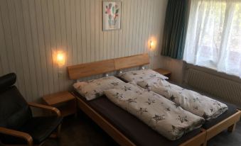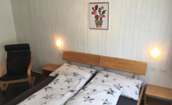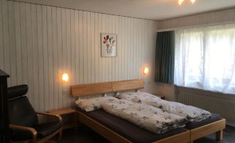 Cozy 3.5-room apartment for 4-5 people (77 m²). The inviting living room features a seating area, TV, DVD player and a south-facing balcony. The modern, enclosed kitchen with a dining table and access to the south-facing balcony is fully equipped, including a dishwasher, Nescafé Dolce Gusto coffee machine, fondue set and raclette grill. Spacious double bedroom and an additional room with a double and single bed. Bathroom with shower/WC and an extra guest WC. Free Wi-Fi is available throughout the house.
