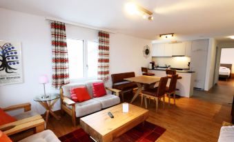 Nice and quiet two-bedroom apartment located 600 meters from Saas Fee’s center, an 150 meters from the car parking. Everest offers a quiet place to rest and relax after a day of skiing or hiking. The local bus to the slopes stops right infront of the building, making it very easy to go to the slopes with all your equipment. The flat is situated on the 3rd floor and the building owns an elevator. There is a laundry room and ski deposit on the ground floor. Everest features a modern living room with new open kitchen, private south-facing balcony with partial mountain view, two big and bright bed-rooms (one with its own balcony), newly refurbished bathroom with shower and free WiFI.