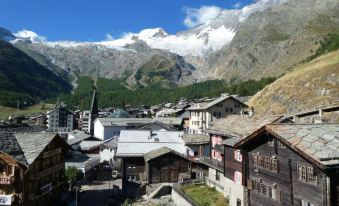 Newly built house Britannia is located in the center of town, right on the lively main street with many shops and popular restaurants in proximity. Apartment Patagonia***** (94m2) is located on the 2nd floor and offers first class accommodation for up to 4 persons. It features 2 double bedrooms with double beds, 2 bathrooms (shower, WC, sink, hairdryer), an open plan living area with a sleek kitchen, dining area and living room with panoramic views from the terrace, flatscreen-TV. The kitchen is fully equipped with dishwasher, oven, Bora induction stove, Nespresso coffee machine, toaster, kettle, cheese fondue set and raclette oven. Private wireless internet is available. A washer and dryer are available in the apartment for guests to use. The apartment is non-smoking and no pets are permitted. Private and heated ski storage facility is available in the building. For all bookings during summer season; ALL the cables cars and buses in Saas Fee, Saas Almagell and Saas Grund are included in the rental rate (Excludes Metro Alpin and summer skiing).