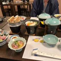Когда мы прибыли в отель, было около двух часов дня. Из-за Дня Благодарения сюда приехало много японцев из окрестностей, чтобы отдохнуть и воссоединиться, и отель был полон, поэтому я не смог забронировать еду. отель, а жаль. Есть два ресторана, еще один в западном стиле и один чисто в японском, с отдельными отдельными залами, но они небольшие и известны своей изысканностью. Проходя мимо, я увидел большую семью, друзей или коллег в кимоно, которые вместе смеялись и смеялись. Подаваемые блюда тоже были очень изысканными, и у меня потекли слюнки.