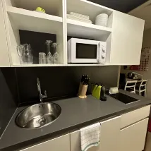 Вам нужна машина, чтобы добраться до центра города, но цена непревзойденная. Большие студии с кухней и дополнительным пространством. Дизайн современный, но немного простой, однако лучше, чем другие бюджетные варианты в городе.