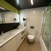 Хотя это место немного удалено от центра Цюриха, оно находится всего в получасе езды на поезде и трамвае. Гостиничный сервис на месте. Номера простые, но чистые, особенно все удобства укомплектованы и удобны в использовании (душ, розетки и т. д.). Завтрак швейцарского качества и очень богатый. Основной обслуживающий персонал ресторана приветливый и дружелюбный.