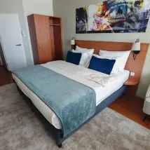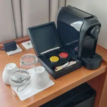 Отель находится в пешей доступности от аэропорта. Искал отель рядом, чтобы на утренний рейс дойти спокойно пешком до аэропорта. К обслуживанию претензий нет. В номере капсульная кофемашина с кофе на две чашки, минеральная вода.
