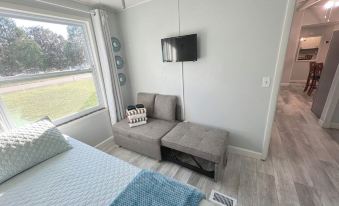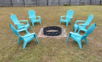 When the evening rolls around, gather around the outdoor firepit to roast marshmallows and stargaze. There's also a grill BBQ for cooking up delicious meals in the great outdoors. Located just a few miles from the beach and boat ramp!