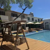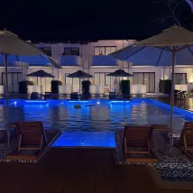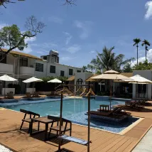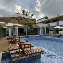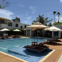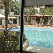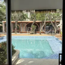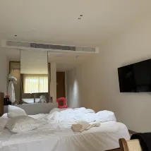 Сотрудник на стойке регистрации бесплатно повысил мне категорию номера до первого этажа с прямым выходом к бассейну с балкона. Наблюдать за солнечными ваннами в бассейне каждый день было невероятно приятно. Номер был безупречно чистым, и даже предлагалась ароматерапия. Я так хорошо спал каждый день! Расположение в деревне позволяло легко найти рестораны поблизости. Двое сотрудников на стойке регистрации были очень любезны! Они объяснили мне, как добраться, и помогли во всём. Я обязательно остановлюсь здесь снова, когда приеду в следующий раз!