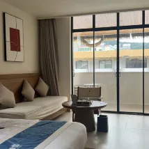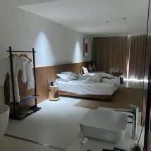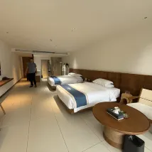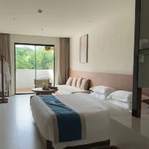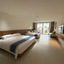 Номер был невероятно просторным и чистым, с видом на бассейн прямо за окном. Хозяин был невероятно мил и внимателен. Хотя дорога до деревни была немного разбита из-за стройки, до отеля на пляже и обратно курсировал автобус. Услуги дворецкого были превосходными и удобными: он забирал и отвозил нас на пляж. Если что-то требовалось, достаточно было написать короткое сообщение в WeChat. Фотографии из путешествия, предоставленные отелем, были просто фантастическими. Рестораны и магазины удобно расположены рядом с отелем! Настоятельно рекомендую.