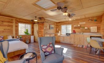 Love the charming extra cottages - real retreats. Groceries are 7 minutes away and river access for wading (which is fun) was about 5 minutes away.