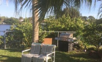 Great backyard with chairs, table and beach bed. Backyard is available for the barbecue.