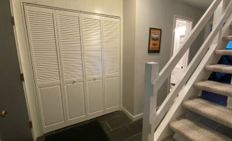 Bedroom 3: Located on the second floor, has a queen bed, TV, dresser, and closet.