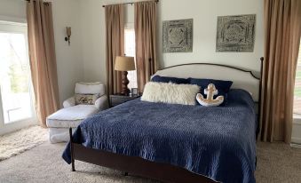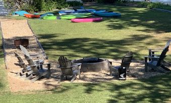 Water Toys: We provide 5 kayaks, a canoe, and 2+ paddleboards for your use at your own risk. Bring your life vests, though we have various sizes available at the house. There's a wide cove to explore and a safe spot for swimming, with water 4-5 feet deep off the dock. Kids might like water shoes since they can touch the bottom.
