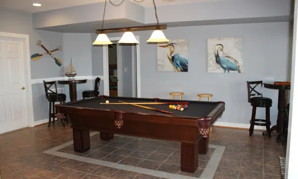 This spacious five-bedroom, four-bath home is designed with your comfort in mind. It features a fully equipped kitchen, upstairs and downstairs mater suites & a cozy living area upstairs & downstairs. Upstairs open area with family room, dining area and kitchen, plenty of room to enjoy! Downstairs is a second family room along with a pool table, foosball table and wet bar.