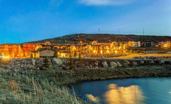 Beautiful modern 3,000 square foot five bedroom townhouse located 10 minutes from Park City available for family vacations. Townhouse has two master suitesl. One king bed, four queen beds and two twin beds. All brand new mattresses and bedding. Four full baths and a 1/2 bath. A well stocked kitchen with brand new appliances and a bbq grill on the deck off the kitchen. The lay out is perfect for adults and kids. Open kitchen to the living and dining areas prepare food and enjoy your family at the same time. The dining room can accommodate 14 adults comfortably. The eat in kitchen can accommodate 14 people, feed them fast and get out on the hill. There is a large recreation room in the walk out basement with with lots of seating and a 60' tv. An ideal space for teenagers and kids to be noisy. The community center has a hot tub and pool as well as a pool table and screening room. There is a gym with treadmills and modern workout equipment.