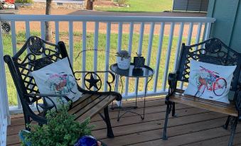 Our Beautiful Amazing Grace Cottage is located on 5 acres in Carmine and only 8 minutes from all the action in Round Top. This wonderful cottage is surrounded by scenic views and tranquility. All of this you can enjoy while sitting on wrought iron chairs on the private front porch.