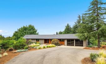 Experience stunning sunrises & sunsets with views of coastal mountains, peach orchards & farmlands from this fully renovated, modern daylight ranch. It has 5 bedrooms and sleeps 10. Flex spaces, a game room & a Zen living room atmosphere make it unique. The game room's roll-up door opens to the backyard, creating an indoor/outdoor space for parties, relaxation, or hosting events for up to 40 people. Right next to Roloff farms & Helvetia Tavern. Exit at TopGolf.About pets:Pets allowed: dogs and cats (limit 2 total).About checkOut:Check out before 11:00 AM.About children:Children allowed: ages 0-17.About customRules:Before You Leave