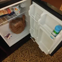 В номере были холодильник, микроволновая печь и сейф, и он был достаточно просторным. Однако, поскольку я жил в смежном номере, я слышал разговоры в соседнем номере.