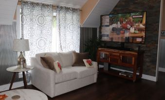 Brand new loft space above the famous Nashville Fudge Kitchen. Open and airy with high ceilings, offering amenities to make you feel at home. Take a flight of outside stairs to your magical view of the town of Nashville from the large windows in the living room and master bedroom. Relax on the outside deck, or cuddle up inside with our large 70" smart TV in the living room. This amazing space features 2 bedrooms, 1 bath and a kitchen to cook up your favorite meal. An ideal girlfriends getaway, a relaxing getaway for 2 or enough space for 2 couples .