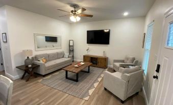 INDOOR LIVING: 3 Smart TVs, contemporary furniture & decor, shower/tub combos in both full bathrooms