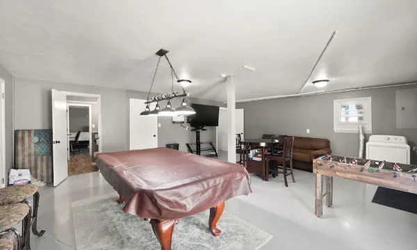Fast and reliable Wi-Fi. Plenty of cell service. Tons of board games to enjoy, including Cornhole boards. A pool table and Foosball table are located in the basement. Kitchen is stocked with everything you would need to prepare a meal, (including a Keurig) and each bathroom is stocked with a start up amount of toilet paper (larger groups will likely need to stop and get more). Washer and dryer located in the basement.