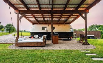 Located in the back corner of a 2 1/2 acre hay field, this 1973 Airstream Argosy camper is the perfect blend of privacy and peace for any couple looking to get away. Relax by the fire pit on the daybed swing, in the hot-tub, or on the couch watching your favorite shows. Remodeled in 2025, this airstream offers modern amenities while still keeping the traditional airstream look. Complete with a queen bed, full shower, large couch, and a fully stocked kitchen, you won't want to leave!About pets:No pets allowed.About checkOut:Check out before 11:00 AM.About children:Children allowed: ages 0-17.About customRules:Absolutley no adding bubbles, soap, or anything else of the nature to the hot-tub. This will result in a $300 fine(as well as reporting you to vrbo.).About checkIn:Check in after 3:00 PM.About smoking:Smoking is not permitted.About minBookingAge:Minimum age to rent: 18.About events:No events allowed.
