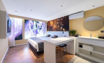 房間整體看起來很不錯,洗手間也是乾濕分離,最重要的是床很軟很舒服,房間還有星座分類,很特別的設計,放東西的地方很多,離周邊韓樂坊夜市很近很方便,來住了三次了,以後還會來的