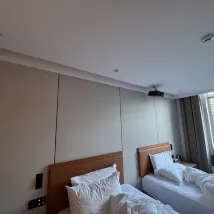 The room is as exactly shown on the picture. It’s smart room, that when you walks in, it automatically opens the curtain and turns on the ac and lights.