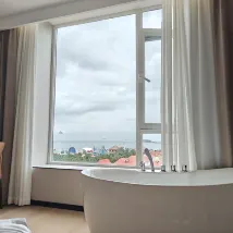 “Vị trí khách sạn rất đẹp, chỉ mất vài phút đi bộ ra biển. Phòng có ban công view biển cực chill, buổi tối gió mát và yên tĩnh. Nhân viên thân thiện, lễ tân hỗ trợ nhận – trả phòng nhanh chóng. Rất đáng để quay lại!”
