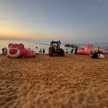 It is next to the water park, which is by the beach and about 10 minutes walk from the hotel. A 10-15 minutes DiDi ride will take you to downtown for shopping or to the scenic areas.