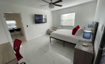 First I'll talk about the property: I booked this property for about 2 months while I was on a rotation at a hospital nearby so I would leave very early mornings or sometimes late at night. Everything about it was perfect and as a woman alone leaving at odd hours I never felt unsafe. The property location is great, I would even walk to the Publix half a mile away as it was a nice walk or to nearby parks as well. The property itself is clean and cute and has everything you could need for a long or short stay, full size fridge, utensils and cookware, coffee maker, tv, bath products. I even was able to bring my cat who enjoyed watching outside the windows as well.