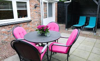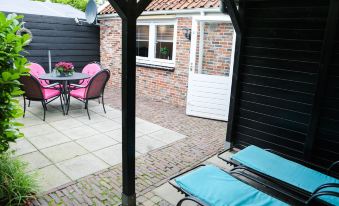 has a walk-in shower, toilet and sink. The cottage is heated by a pellet stove. A pellet stove is an electrical unit that burns small pieces of recycled and compressed sawdust and wood chips. These heaters are particularly efficient and they offer a particularly sustainable way to heat the house. door In the garden with a south-facing terrace you can enjoy the sun and if that gets too hot you can cool off under the canopy on the existing sun loungers.About pets:No pets allowed.About checkOut:Check out before 10:00 AM.About children:Adults only.About checkIn:Check in after 3:00 PM.About smoking:Smoking is not permitted.About minBookingAge:Minimum age to rent: 23.About events:No events allowed.