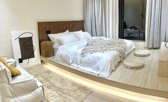 Wabi-Sabi Style Mountain-View Tatami Double Bed Room With Projector