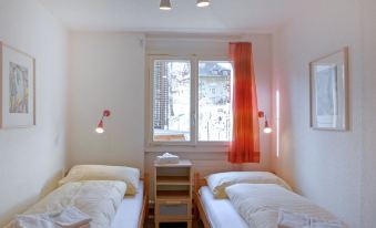 Apartment block "Schoneggacher". Above Wengen, 300 m from the centre, in a quiet, sunny position. In the house: central heating system. Pre-arrival grocery service. Shop, grocery, supermarket 400 m, restaurant 200 m, bar, bakery 400 m, 7 minute walk to the centre, bus stop "Lauterbrunnen (by train)" 3.4 km, railway station "Wengen", outdoor swimming pool 400 m. Cable car, skisport facilities 400 m, slopes 20 m. Well-known lakes can easily be reached: Thunersee 13 km, Brienzersee 13 km. Please note: car-free holiday complex. In case of good snow conditions, the house is accessible on skis. Arrival via mountain railway. Arrival is only possible by train from Lauterbrunnen – 14 minutes travel time. "Schoneggacher Apt. S", 3-room apartment 67 m2 on 1st floor, south facing position. Bright, modern and cosy furnishings: living/dining room 23 m2 with cable TV (flat screen), hi-fi system and DVD. Exit to the balcony. 1 double bedroom with 1 double bed (180 cm, length 200 cm). Exit to the balcony. 1 room with 2 beds (90 cm, length 210 cm), separate WC, shower/WC and double hand-basin. Open kitchen (oven, dishwasher, 4 ceramic glass hob hotplates, toaster, kettle, electric coffee machine, Capsules for coffee machine (Nespresso) extra, raclette grill, fondue Set (chinoise, cheese)). Heating. Natural stone floors. Balcony 7 m2, balcony 3 m2, south facing position. Marvellous panoramic view of the mountains and the ski run. Facilities: Internet (WiFi, free). Please note: suitable for families. Non-smokers only.