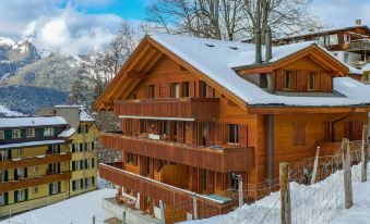 Apartment block "Roossihuus", built in 2003. 400 m from the centre of Wengen, excellent location: right in the centre but still quiet. In the house: central heating system. Pre-arrival grocery service. Shop, supermarket 400 m, restaurant 100 m, bar, bakery 400 m, 5 minute walk to the centre, bus stop "Lauterbrunnen (by train)" 3.4 km, railway station "Wengen" 400 m, outdoor swimming pool 700 m. Cable car, skisport facilities 400 m, children's playground 150 m. Well-known lakes can easily be reached: Thunersee 13 km, Brienzersee 13 km. Please note: car-free holiday complex. Arrival via mountain railway. Arrival is only possible by train from Lauterbrunnen – 14 minutes driving time. "Roossihuus Apt.S", 4-room apartment 120 m2, on the top floor. Spacious, rustic and stylish furnishings: living/dining room with open-hearth fireplace, cable TV and radio. 2 rooms, each room with 1 double bed (2 x 90 cm, length 200 cm). 1 room with 2 beds (90 cm, length 200 cm). Open kitchen (oven, dishwasher, 4 ceramic glass hob hotplates, toaster, kettle, electric coffee machine, Capsules for coffee machine (Nespresso) extra, raclette grill, fondue Set (cheese)). Shower/WC, 2 Baths/showers/WC. Large balcony. Balcony furniture. Very beautiful panoramic view of the mountains. Facilities: iron, hair dryer, logs (extra). Internet (WiFi, free). Please note: non-smokers only.