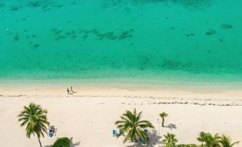 Luxury condos on historic Boggy Sand Road. At night you can hear the waves breaking on Boggy Sand Beach, the most secluded part of Seven Mile Beach.