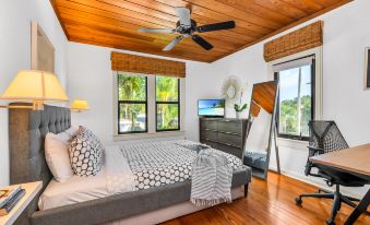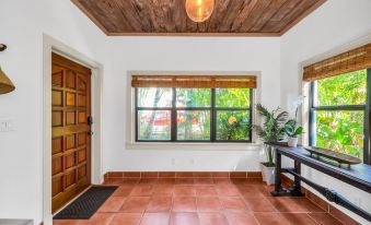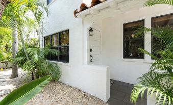 Shaded by palms and frangipani trees, the resort-style outdoor entertainment area offers dining and lounge seating, BBQ, and a relaxing hammock. The location is within walking distance to the Intracoastal Waterway, the shops on Antiques Row, and the bars and restaurants on Dixie Highway. It is less than a 10-minute drive to the fabulous shops and beaches of Palm Beach Island.