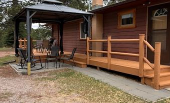 Tin Mill Cottage is located just off Old Hill City Road on a quiet wooded lot. Enjoy your coffee in the morning or evening gatherings on the deck or covered gazebo sitting area facing the woods. Deer and turkey are common visitors to the yard and adjacent wooded lot! Tin Mill Cottage is conveniently located on a hillside overlooking the route of the 1880 Train as it chugs up Tin Mill Hill towards Keystone and is a short walk to the downtown area. Tin Mill Cottage is just a short walk to nearby Major Lake for fishing.