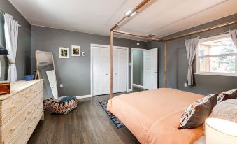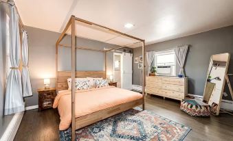 The Dream Den is the Primary Suite: Spacious and serene with a four-poster king bed, plenty of storage, and an en-suite primary bathroom.