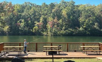 Please note that our reservation policy limits occupancy to five guests (It’s a small cabin) and our cabin is strictly non-smoking and pet-free. An amenity pass is REQUIRED for all guests by Mountain Lakes which should be purchased from the Clubhouse prior to your arrival. Adults are $8/day and children are $5/day. Please call the Clubhouse at 706-865-4742 to have your passes ready at the security gate.