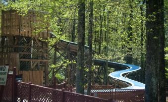 As a guest of Mountain Lakes, a premier cabin and RV Resort, you will have access to a wide range of resort amenities, including indoor and outdoor pools, playgrounds, horseback rides in the National Forest, Clubhouse with a sitting room, TV, sauna, fitness room, pool table, puzzles, games, a 50-acre lake stocked with fish, paddle boats, beach, water slide, miniature golf, hiking trails, and waterfalls. Wi-Fi is available not only at the cabin but also at the Resort Lodge and Country Store.