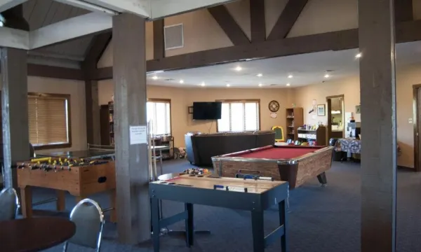 *Clubhouse with a sitting room TV, sauna, fitness room, pool table, puzzles, and games