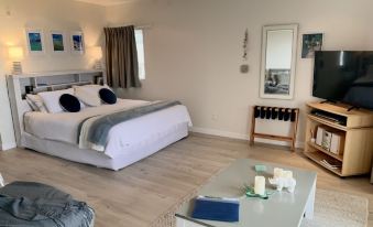 Kick back and relax in this calm, stylish space. Breathtaking views of the ocean, (across the road). 1st Floor, private entrance. Fabulous, shared heated pool and private spa bath (hot tub). Super king bed and fully equipped kitchenette. Covered patio, which has a double sofabed for a third guest. Small putting green on site and use of boogie boards and beach chairs. Enjoy a promenade walk into town, which has delicious eateries, boutiques and DIY stores. Activities nearby include The Lost Springs Spa, Glass bottom Boat Tours, Mercury Bay Museum and Hot Water Beach. You will love it!! 🏖️About pets:No pets allowed.About checkOut:Check out before 11:00 AM.About children:Children allowed: ages 0-17.About checkIn:Check in after 3:00 PM.About smoking:Smoking is not permitted.About events:No events allowed.