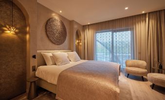 Hotel ziet er prachtig uit. Ontvangst was prima. We kwamen om 11.00 uur aan. We konden de bagage achterlaten bij de receptie en zij zouden het naar onze kamer brengen. Kamer was beschikbaar vanaf 15.00 uur. Toen we na 15.00 uur op onze kamer kwamen was de bagage er niet. Die heb ik zelf weer bij de receptie moeten ophalen. Ze waren er nog niet aan toe gekomen!? Laat het dan achterwege en zorg dat we de bagage ergens kunnen opbergen. Het bed was groot. En blijkbaar te groot voor de onderlakens. Men had 2 onderlakens gebruikt voor het opmaken. Met dus een overlapping halverwege. Dit voel je direct als je gaat liggen en verschuift tijdens het in bed liggen. Als nieuw hotel had ik eerst gekeken bij andere hotels van Thermen. Bijv. Bussloo. Prima bedden. Het restaurant zag er prima uit. Eten was oké. Men pretendeert alsof we eten in een 3 sterren restaurant. Maar dan loopt een deel van het personeel niet op Nike-sneakers. Men vroeg of we kaviaar wilden proberen bij ons voorgerecht. Leek ons prima. Er werd niet bij verteld dat dit tegen een meerprijs was van €10,00 voor een heel klein theelepeltje. Ook de aangeboden koffie werd zonder melk en lepeltjes geserveerd en koste € 4,00 per kopje. Fles wijn werd aangeboden voor €65,00. Kost € 13,00 in supermarkt. Glazen werden minimaal gevuld. M.a.w. geen sterrenrestaurant. Koffie had van de zaak moeten zijn. We hadden reeds € 400,00 betaald voor 1 overnachting incl. diner a la carte. Was nu verrassingsmenu. Prijs/kwaliteitsverhouding slecht. In shop bij de receptie was geen personeel, Iemand van de receptie hielp ons, maar gaf eerlijk toe dat ze niets wist van de producten. Na het eten wilde we nog wat drinken in de Loungebar. We hebben ongeveer 5 minuten gewacht. We hebben niemand van het personeel gezien. Personeel en voorzieningen van het Thermendeel was daarentegen erg vriendelijk en behulpzaam. Lunch bij Saunaplein was prima.