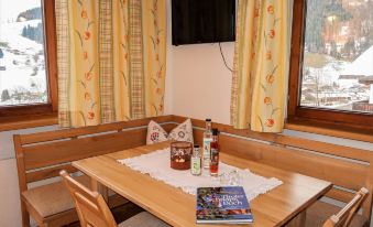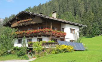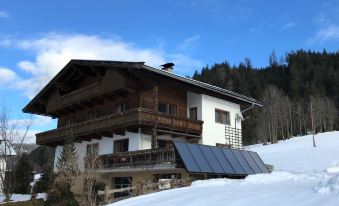Oberau: Beautiful apartment house, 3 storeys. Above Oberau, in the district of Bichling, on the outskirts, 900 m from the centre of Oberau, in a sunny, elevated position on a slope, along the wooded area. In the house: storage room for bicycles, storage room for skis, ski boot dryer. In Winter: please take snow chains. Parking at the house on the premises. Shop 900 m, grocery, supermarket, restaurant 500 m, bakery 900 m, bicycle rental 600 m, bus stop, outdoor swimming pool 2.5 km. Walking paths from the house 10 m, mountain railway 4.5 km, gondola lift 4.5 km, slopes 4.5 km, ski rental 500 m, ski bus stop 600 m, ski school, children's ski school, cross country ski track, ice rink, children's playground 950 m. Well-known ski regions can easily be reached: SkiJuwel Alpbachtal - Wildschönau 4.5 km, Skiwelt Wilder Kaiser - Brixental 15 km. Hiking paths: Schatzberg, Markbachjoch, Brixental, Hohe Salve, Hochbrixen. Please note: ski bus (free of charge). "Gratlspitz", 2-room apartment 35 m2 on 1st floor. Spacious and bright, beautiful and cosy furnishings: 1 double bedroom with 1 double bed (180 cm, length 200 cm). Exit to the balcony. Large kitchen-/living room (oven, dishwasher, 4 ceramic glass hob hotplates, toaster, kettle, microwave, electric coffee machine) with dining nook and satellite TV (flat screen). Exit to the balcony. Shower/WC. Heating. Wooden floors. Balcony. Balcony furniture, sitting area. Marvellous view of the mountains, the valley and the resort. Facilities: Internet (WiFi, free). Please note: smoke alarm.