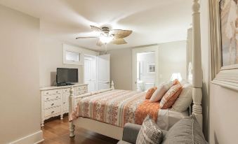 The main bedroom has a plush KING sized bed, flat-screen TV, Roku and a large newly renovated modern bathroom with double vanity, shower and jacuzzi.