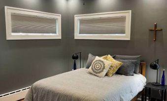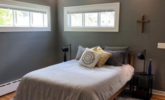 The double-day bed bedroom has lots of light and is available for kids to share!