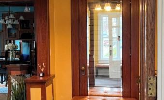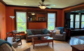 The Living Room is warm and cozy. The Room's woodwork is gorgeous.