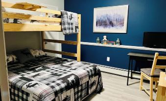 Accommodations are perfect for large groups, three families can easily share this home. Antler Forest and Moose Tracks bedrooms each have a queen bed with a full size loft bed. Little Calf Creek has a full over full log bunk bed and a queen sized pull out couch with a Ms. Pac-Man Arcade, smart tv for streaming movies or favorite tv shows and an HDMI cable to hook up your gaming console. Perfect for relaxing after a fun day exploring Southern Vermont! Bulls & Cows, the primary bedroom, features a beautiful king bed right off the main living area. All new mattresses, pillows and linens in all the bedrooms. Two beautifully renovated spa like bathrooms with rain shower and handheld sprayers. The downstairs bathroom has a large tub for soaking your bones after an adventure filled day. The upstairs bathroom has a spacious shower and bidet toilet. All new bath towels are provided.