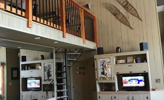 The house has four bedrooms, two full baths, and a half bath with enough space for your guests to stay comfortably. All beds have fresh linens and bathrooms have towels and paper products. The open concept main floor offers wonderful views from the very large picture windows. The family room has a large couch and working fireplace for comfort and snuggling. The retro kitchen has plenty of counter space and is stocked with everything you need for preparing and serving meals. A gas grill is also available. The loft area is a favorite space with large TV, PS3, movies, games, books and spaces to curl up. The daybed in the loft offers another great spot for sleeping. Wi-Fi is provided to stay well connected.