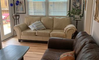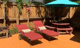 3- Bedroom, 2- Full Bathroom, Cozy Cottage on a quiet street with a great fenced in backyard, gas grill and parking for up to 3 vehicles. . Large wood deck with flowers, picnic table and umbrella with lounge chairs and a Hot tub too.