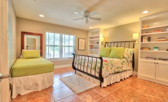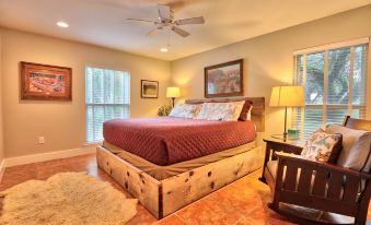 This roomy home is also great for brides-to-be and their bridal parties. The master suite is equipped with a huge three-way mirror, so the bride can ensure that she looks perfect from head to toe! And, the well-lit vanity in the sitting area is great for those wedding day makeovers. Imagine getting ready for your special day with the soundtrack of the Blanco River to ease your stress and provide a relaxing environment for you and your friends.